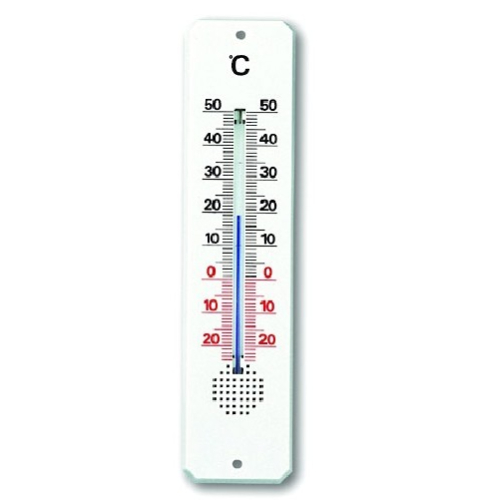 Teploměr univerzální. Materiál: plast, barva: bílá, montáž na zeď, rozměry: 48 x 9 x 198 mm, hmotnost: 20 g.