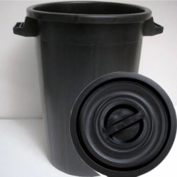 Nádoba BIDONE - sud kónického tvaru o objemu 75 l s uchy - vyrobená z černě barveného polyetylenu (pružná-gumová), vhodná na dešť.vodu, k tech. účelům, na odpad apod.
